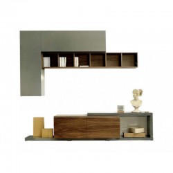 The Urban Plus 004 wall-unit composition by Alexopoulos & Co is a modern modular living-room system featuring both floor-standing and wall-mounted elements. It is available in wood-veneer (oak or walnut) or lacquer finishes.